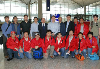 食物环境卫生署署长卓永兴、水务署署长马利德及署理卫生署卫生防护中心总监梁挺雄医生,19日早在队伍出发前吁请他们把香港市民的关怀和问候带给受地震影响的灾民。他们又向救援队的无私奉献表示谢意,并鼓励他们在行动中竭尽所能。
