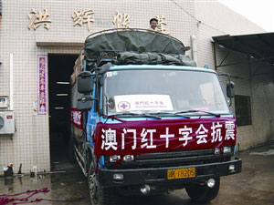 澳门红十字会日前紧急赴广东采购四川地震灾区急需的帐篷、流动厕所、医疗器材及防潮充气床垫等物资,26日起陆续运送往灾区。首批600顶帐篷及1600个防潮充气床垫,26日分别从佛山盐步和江门鹤山向绵阳灾区运送。