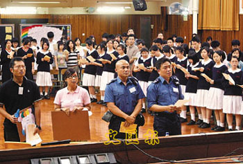六月五日,香港学友会、香港群青会在香岛中学举办“川港连心—四川地震悼念会”。多名曾经到灾区报道的记者和搜救队成员及专家,应邀到场与学生们一起悼念遇难的同胞,并分享生命教育的意义。 中新社发 洪少葵 摄