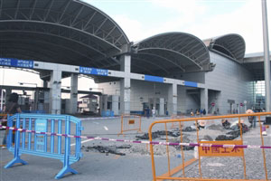 关闸出入境车道临时交通改道措施,按照工程进度分三阶段进行。11日首阶段临时交通改道措施,工人体育馆旁的出境车道封闭,封闭期16个月,封闭后只供工程车辆出入。因应扩建工程在车道进行,出境车辆须经孙中山公园旁的车道,即西边新建临时车道出境。