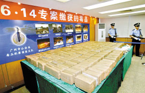 今年6月4日,经过近一年的艰苦侦查,在公安部、广东省公安厅禁毒局的指导协调下,在黄埔海关、安全等部门以及香港、澳门、广东省有关地市警方的协助下,广州市公安局成功破获公安部督办的“6·14”特大跨国走私可卡因案, 先后抓获9名犯罪嫌疑人(其中两名为外籍犯罪嫌疑人),缴获毒品可卡因共约530千克及作案汽车3辆,成功切断了一条从南美洲到中国的可卡因运输线。