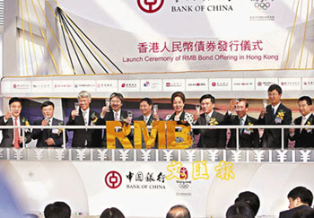 中新网7月14日电 据香港文汇报报道,中资银行去年在香港发行100亿元人民币债券(简称人债),今年新一批人债即将面世,有指内地五间商业银行拟在港发行一共不少于150亿元人债。