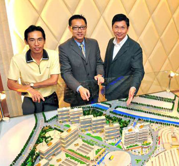 图:郭子威(中)和吴榕凯(左)22日亮相广州,介绍投资建设动漫主题公园。(图片来源:大公报)