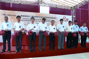 图:主礼嘉宾为鸭涌河变电站主持剪彩。(图片来源:澳门日报)