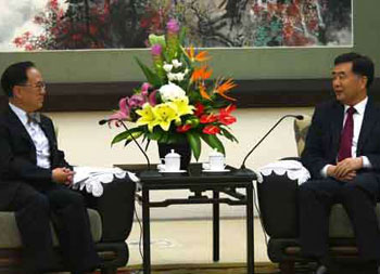 汪洋透露,在赴广东任职8个月的时间,与曾荫权会晤4次,这种频繁的会晤有利推动粤港两地合作取得实质性进展,包括前不久在香港签署了CEPA 5以及CEPA 5以外的在广东先行先试的一些举措,广东先行先试的合作举措有25条。