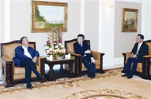 何厚铧在厦门与福建省省委书记卢展工及省长黄小晶会晤。(图片来源:澳门日报)