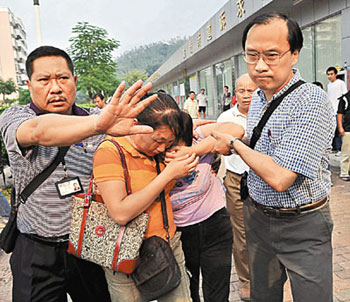 遇难港人家属抵深圳,在特区驻粤办人员协助下赶赴医院。(图片来源:文汇报)