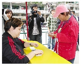 陈女士希望取得三位航天员的亲笔签名,若能近距离接触,握手或合照,将毕生难忘。经三次轮候,陈女士终换得6张门票,满载而归。由于门票不设划位,她表示将于当日中午12时到场等候,望能“霸”得好位,感受现场气氛。