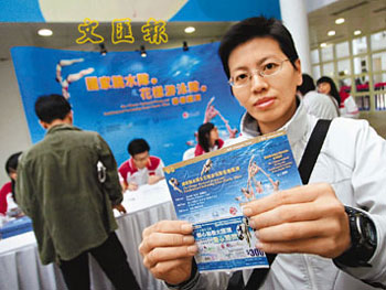 中新网12月30日电 据香港《文汇报》报道,国家跳水队及花样游泳队下月来香港参与慈善汇演,主办单位中国运动员教育基金29日起一连两天出售约1700张门票,但市民反应未见踊跃,开售初期只有约30人排队轮候,全日售出约2/3门票。
