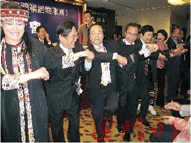 “中台湾(中中彰投)四县市澳门精致物产展”9日下午3时在友谊广场开幕,共吸引40家台湾展商来澳参加。大会8日下午4时在澳门金龙酒店金龙轩举行记者招待会,台中市长胡志强,台中县长黄仲生,彰化县长卓伯源,南投县长李朝卿,闽台总商会副会长陈明白、王仁杰,澳日实业有限公司总经理李业飞出席介绍情况。