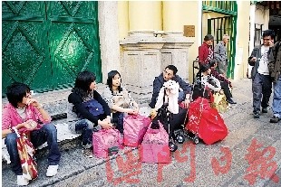 也有来自佛山、一家大小六人来澳买年货。林先生表示,这次来澳是做“阿四”——站在超巿门外守候着大袋小袋的“战利品”,等了逾20分钟,其家人还在“扫货”。