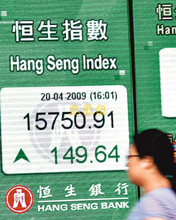 中新网4月21日电 据香港《文汇报》报道,港股20日显著波动,好淡争持,仍未能突破16000点大关,成交也有所减少。恒指20日低开后曾跌至15382点低位,其后指数回升,从低位一下子反弹至15878点水平,波幅超过500点。全日恒指先跌后升报15750.91点,升149.6点,成交572亿元。