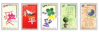 这套“国际和平日”特别邮票由八月三十一日起在此间邮政总局、尖沙咀邮政局、荃湾邮政局及沙田中央邮政局展出。正式首日封同日在各间邮政局公开发售。三十九间邮局在八月三十一日至九月六日期间,接受自备首日封盖销服务。九月二十一日,为正式首日封及附有首日发行标记及香港地址的自制首日封,并推出一款特别邮戳。(完)