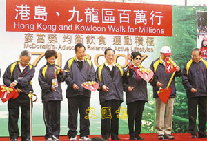 中新网1月8日电 据香港文汇报报道,香港公益金07年首个大型筹款项目—“港岛、九龙区百万行”7日在香港大球场举行开步礼,特区行政长官曾荫权伉俪亲临主持。