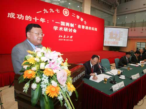 中新网6月21日电 “成功的十年:‘一国两制’在香港的实践学术研讨会”日前在北京大学举行。凤凰卫视控股有限公司董事局主席、行政总裁刘长乐在会上表示,置身于“一国两制”下,回归十年,香港作为资讯传媒中心的地位没有改变,传媒资本运作的市场机制没有改变,新闻自由及言论的多元包容没有改变,与此同时,香港与内地的良性互动却变得日趋紧密。
