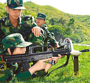 中新网7月25日电 据香港文汇报报道,“香港青少年军事夏令营”已踏入第11天,经过多日训练,“小军人”各方面的表现有进步,其中在最具挑战性的环节--射击技术操练的表现更有很大提升。有首次参与夏令营的女同学,在实弹射击的计分考验中当了“神枪手”,10发子弹9发击中目标,获军官大赞,而男同学的表现亦在短短数日间突飞猛进。