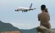 中新网9月3日电 全球最大民航客机--A380客机,今日(3日)早先后两次在维多利亚港上空低飞,为亚洲国际航空展览会暨论坛揭开序幕。