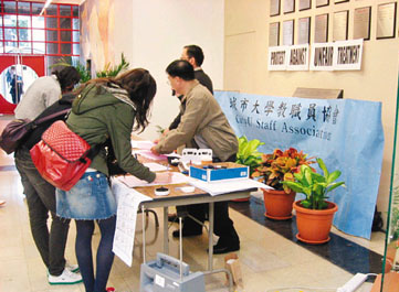 香港城大教职员会15日在校内发起签名行动,争取改善待遇,共有过千名师生签名支持。