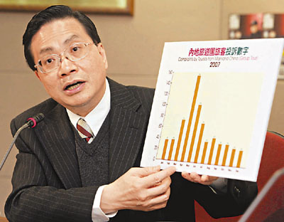 中新网1月22日电 综合香港媒体消息,香港消费者委员会去年接到38000多宗投诉,创下历年新高。位于投诉榜首的是电讯服务,消委会共接获超过10000宗投诉。消委会主席张炳良表示,将于下月向特区政府提交建议,规管各样不公平、误导和欺骗性的营商手法。