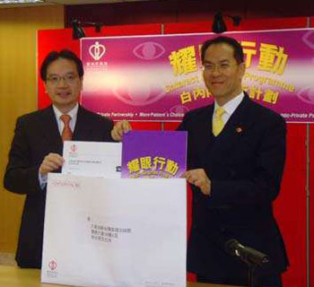 图:张伟麟(左)与周伯展预计“耀眼行动”将有多于7000名白内障病人受惠。(图片来源:大公报)