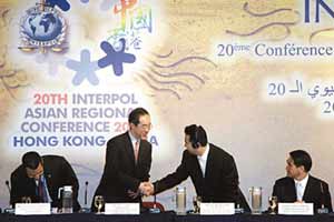 第20届国际刑警组织亚洲区会议开幕礼。左二为唐英年,右一为邓竟成。文汇报图