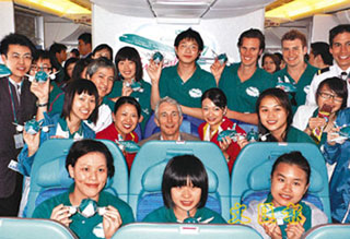 此外,国泰也安排了18名香港中文大学的海外交换生作英语大使,为学生提供“学好英语”的机会,机舱也变成了一间“空中英语教室”。