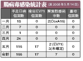 图:肠病毒感染统计表。(图片来源:澳门日报)