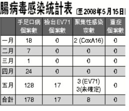图:肠病毒感染统计表。(图片来源:澳门日报)