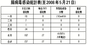 肠病毒感染统计表(至2008年5月21日)。(图片来源:澳门日报)