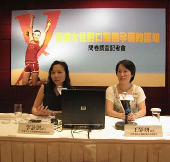 香港中文大学药剂学院于本年1至5月间进行了一项“香港女性对口服避孕药的认知”问卷调查,透过网上问卷,并在家计会和青少年保健中心派发问卷,访问了623位年龄介乎16至50岁的女士,当中有近八成人表示不使用口服避孕药,更有四成人对避孕药的知识被列为不及格。