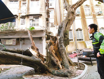 赤柱大街百年刺桐裂开倒塌,致压死少女。(图片来源:文汇报)