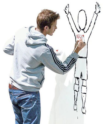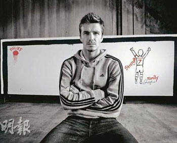 贝克汉姆在某广告中即席挥毫,画了《圆的世界》。(图片来源:明报)
