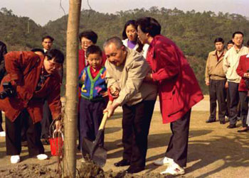 邓小平当年南巡时亲自在深圳植树。(图片来源:大公报)