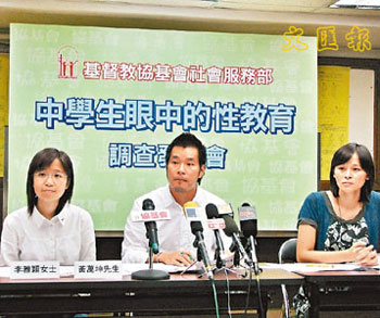 基督教协基会屯门综合青少年服务中心于6至7月间,就“中学生眼中的性教育”为题进行问卷调查,成功访问了3584名中学生,当中男女约各占一半。调查发现,29.1%的受访学生坦言“不喜欢参与学校性教育的活动”,较“喜欢参与的学生”高出2倍。21.7%学生认为校内性教育活动形式“沉闷”。