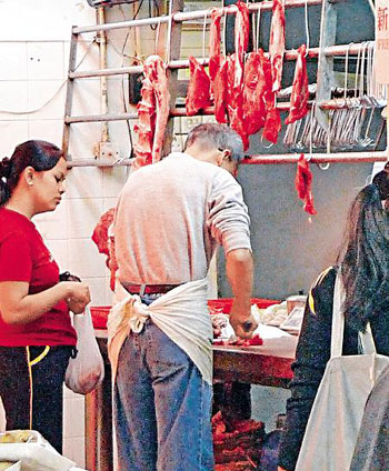该报踢爆不良牛肉档“蛊惑”招数后,记者24日到街市巡查,发现不少平时挂满问题牛肉的肉档,都将“不能见光”牛肉收起暂避风头,其中位于马鞍山、被揭发有问题的肉档,架上只挂上寥寥可数的牛肉售卖。