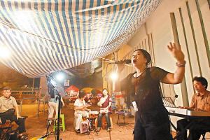 在庙街,老人们欢快地唱响经典老歌,自娱自乐。(图片来源:广州日报)