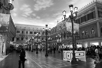 于2007年8月开业的威尼斯人度假村酒店,占地150万平方米,融名店、娱乐、酒店等于一体,客房达3000间,另设12万平方米的会议展览场地、座位达1.5万个的表演场地、10万方平米的购物中心以及5.4万平方米的博彩场地。