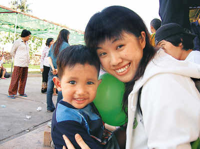 香港浸会大学学生曾岑和柬埔寨的“儿子”。 曾 岑提供