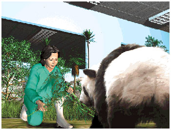 片段也播出游人的惊呼声,一名女士惶恐说:“走!”一名小女孩担心地轻声叫:“熊猫走,熊猫不见。”有公园人员则透过对讲机大叫两次:“熊猫馆over……”之后又说:“没事啦、没事啦。”