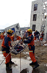 中新网12月17日电 据“中央社”报道,台湾北部8县市今天举行联合救灾演习,为模拟强烈地震后各种灾情,除动员特搜、化学等各式设备及人员外,还设计烟火、爆破、火烧车及危楼、土石流等特效场景,过程逼真。