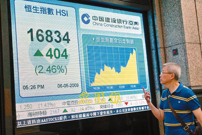 证券业人士指出,由于突然有巨额热钱持续流入,加上市场对经济复苏越来越乐观,令恒指中有逾半股份已升穿250天牛熊分界线,国指更已在2天前升穿牛熊分界线,不排除恒指短期有力上试其牛熊线即17500点的高位。