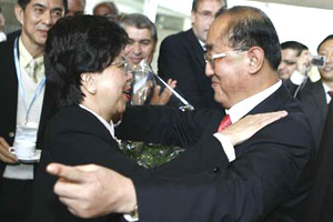 中新网11月9日电 据香港大公报报道,当陈冯富珍最终成为世卫总干事唯一候选人,中国卫生部部长高强及中国驻日内瓦联合国大使沙祖康拥抱庆祝。高强赞扬陈冯富珍当选是中国人的光荣,他除了感谢各执委支持陈冯富珍,更表示中国会加强与各国及世卫的合作。