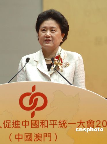 全国政协副主席、中共中央统战部部长、中国和平统一促进会执行副会长刘延东出席大会,并发表题为《携手同心,共促祖国和平统一大业》的讲话。她赞扬世界各地的中国和平统一促进会或类似组织,已经成为团结联系海内外同胞的重要桥梁,成为全球反“独”促统运动的一面鲜明旗帜,成为推进祖国完全统一大业的重要力量。她表示,在新的历史条件下,应紧紧抓住时代赋予的机遇,心系祖国、情牵两岸、弘扬文化、共促和谐,巩固海内外中华儿女的大团结、大联合。