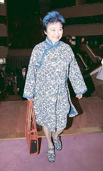 资料图:旗袍是龚如心生前最爱的服饰之一,不少严肃的场合都会穿上。图为香港华懋集团主席龚如心零三年七月一日出席香港特区政府成立六周年庆祝酒会。 中新社发 潘索菲 摄