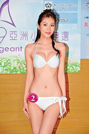 中新网10月13日电 据香港《星岛日报》报道,2009年亚洲小姐竞选一众候选佳丽,日前往广州出席活动,由于大热门王希瑶抱恙缺席,故只有18位佳丽出席,却造就了佳丽刘伊心成为全场焦点,皆因她身材出众,玩跳绳、呼拉圈及蹲下吹汽球时,偶尔春光乍泄,吸人眼球。