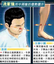 中新网3月22日电 据香港媒体报道,香港警员冼家强及曾国恒均是头部中枪,但两人结局迥异,冼家强的面上枪伤,至今复原进度良好,而他左腿所中一枪,怀疑是凶徒的手枪跌下地时走火射中;反观曾国恒被一枪夺命,子弹中途改变方向,碎片割断其三条动静脉血管,令身体大量组织广泛渗血及呼吸道充斥血液,法医今日将详解曾国恒中枪后具体死因。