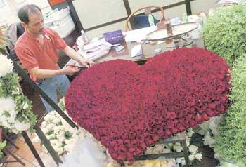 现场所见,龚如心丧礼使用的花饰以红玫瑰和白玫瑰为主,并配以白菊花砌成的花圈。而最特别的,是两个以白玫瑰和红玫瑰砌成,近半个人身高的巨型心形花牌。
