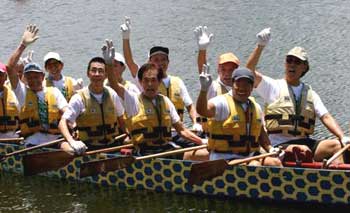 香港耆康会昨(三日)早在城门河举行一场龙舟赛,作为今年端午节龙州赛的热身赛。龙舟赛赛程全长四百米,由两支龙舟队一较高下,参赛者全是六十岁或以上的长者。