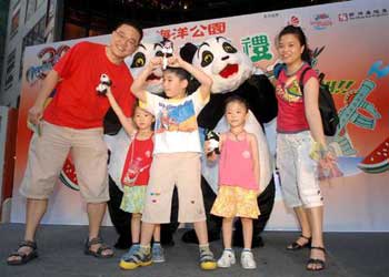 中新网7月16日电 据香港大公报报道,一对大熊猫“乐乐”和“盈盈”昨日走出海洋公园熊猫馆,现身在闹市的商场表演歌舞,还与小朋友合照和玩游戏。千万不要大惊小怪!因为这对大熊猫其实只是“乐乐”和“盈盈”的吉祥物首度出巡,并与园内的保育大使进行歌舞表演及介绍熊猫的生活习惯,让市民对熊猫有更深入的了解。