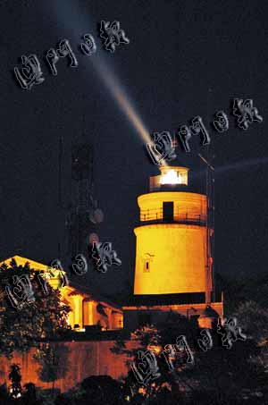 东望洋灯塔射灯在昨日傍晩六时许恢复启动,由于灯塔正进行全面的维修工程,更换塔顶部分玻璃及内外翻新,为安全起见,现场局部地段已暂时封闭,游客只能在敎堂附近观看灯塔的外貌。